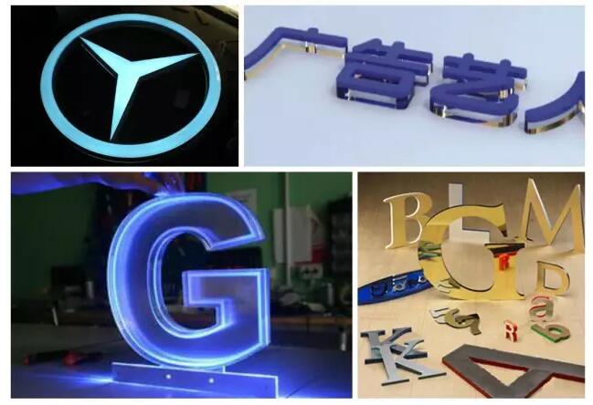 水晶字、立體商標是廣告行業中不可缺少的表現形式。CO2激光切割機可在亞克力、雙色板等材質上進行精準地切劃曲線圖案。由于激光切割機采用的是“非接觸”加工,不會壓壞材料,而且切口光滑,能直接省去二次加工。